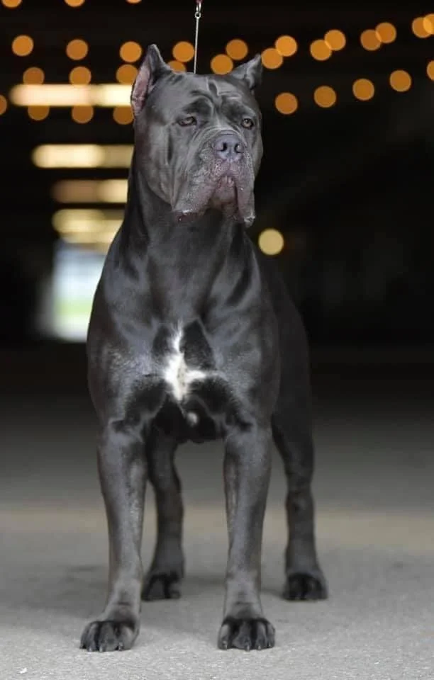 ”Holla” is 26”, 120lbs and a spitting image of her mother, Cinder. She has great substance, bone, a huge deep and wide chest, floating movement and that iconic Corso head. Holla is a true beauty in the Corso world.